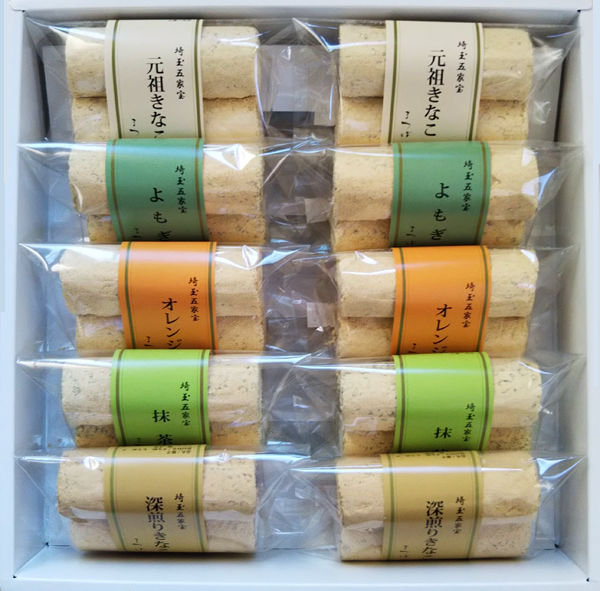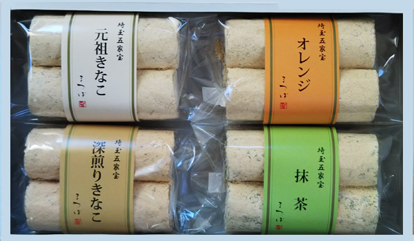 その起源は諸説ありますが、江戸時代文政年間に"五嘉棒"の名で売り出され、その後、"五箇宝"の字があてられましたが、「五穀は家の宝である」という祈りを込めて現在の"五家宝"とつけられたとされる説が有力です。
